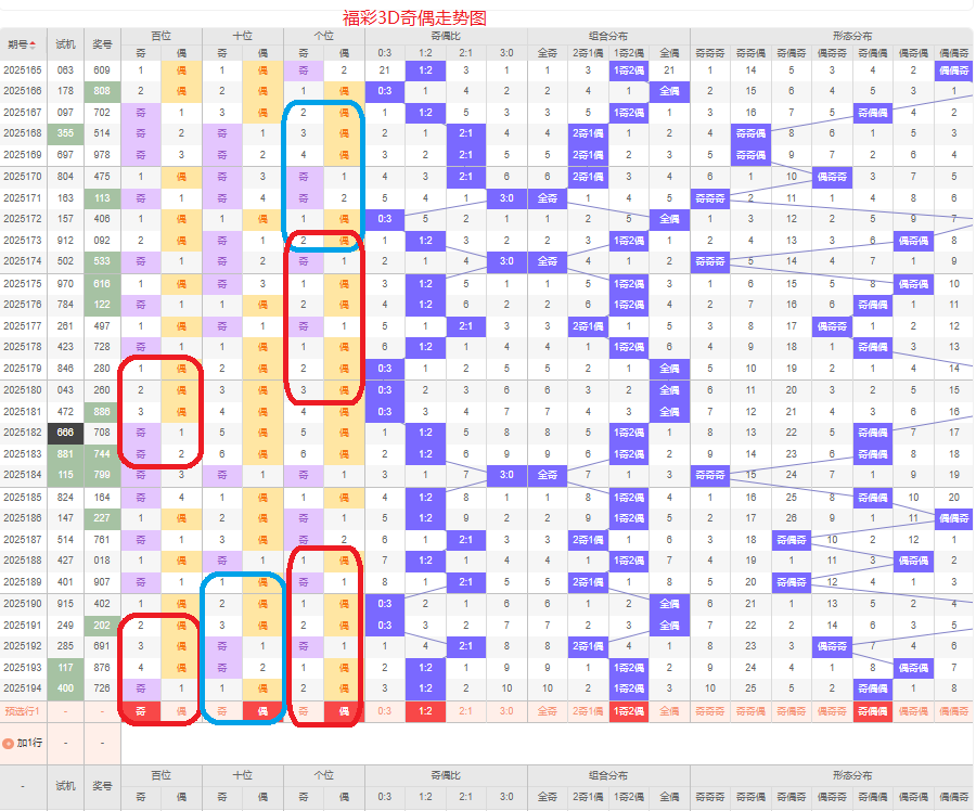 上期奇偶比是1:2,两偶的号码组合方式,从近五期的奇偶数出现情况看,奇数出现4次,偶数出现11次,奇数号码出现较少,本期侧重两偶的号码组合,侧重奇偶偶或奇奇偶的号码组合方式,根据奇偶形态做五码定位13579/02468/02468或13579/13579/02468