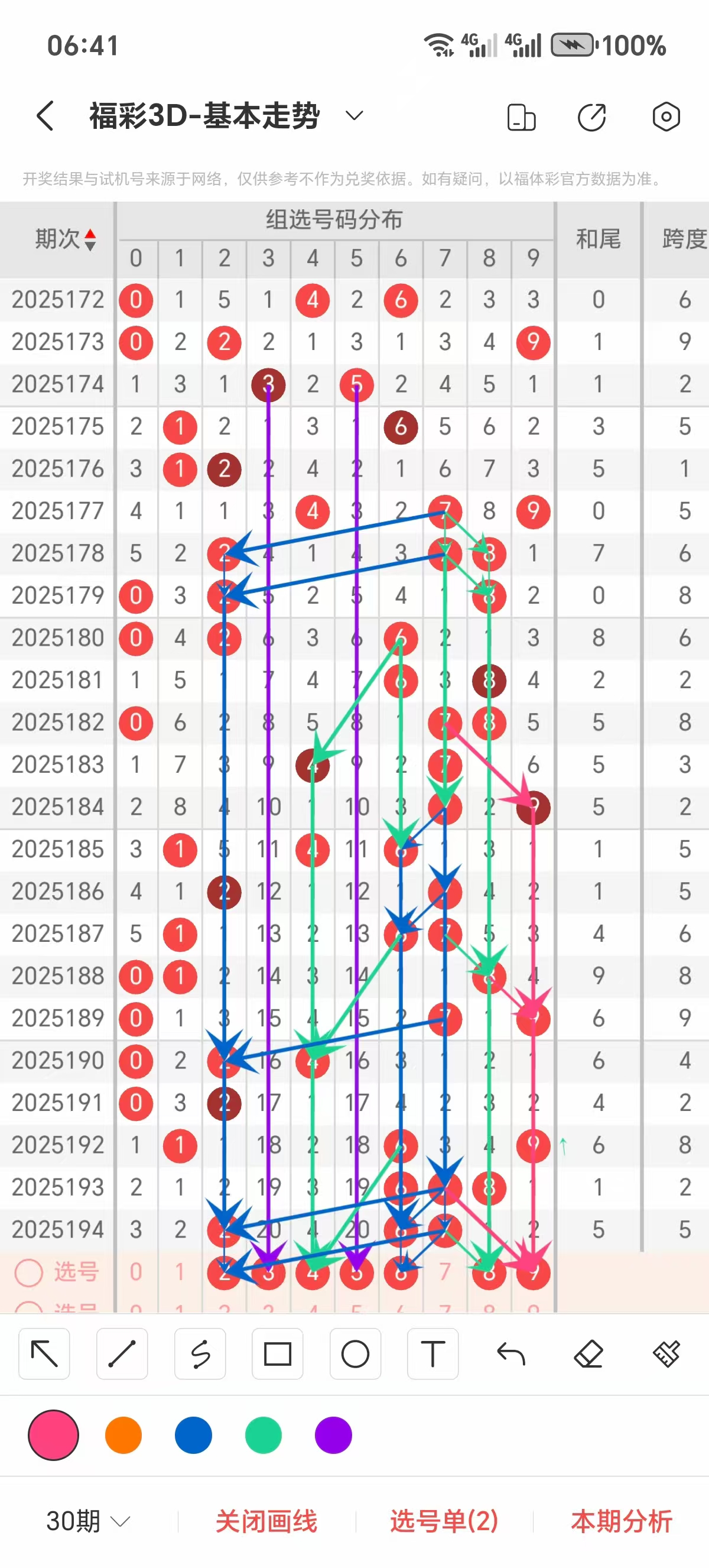 跨度通常情况下在五期之内重复一个跨度的概率很高,近五期重复了2的跨度,近五期跨度为4/2/8/2/5,近期2路的跨度较热,上期是2路的跨度,本期要侧重跨度以6/8/9跨为主的号码组合。可以从跨度方面选择相应的双胆码组合,双胆码的选取要根据近期和历史的走势进一步的分析选取。