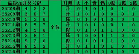 福彩3D是从0-9每期开出3个号码,截至2025214期三个位置最大遗漏的是32期个位的9号。