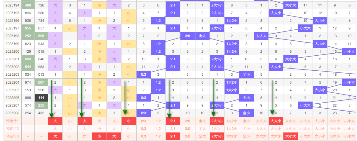 最近的5期当中个位大数出现的频次2次 小数出现3次 ,趋势平和 本期看好继续走大