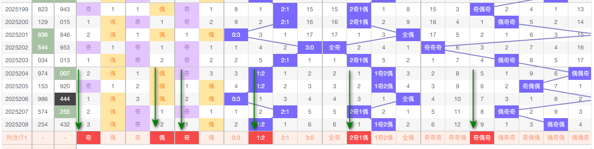 (二)、奇偶分析 奇数 13579 偶数 02468 在这5期 数据中 奇数出现 5次 偶数出现 10次 从昨天出号来看偶数占优, 本期看好奇数有号回补 看好 奇奇偶 奇偶奇