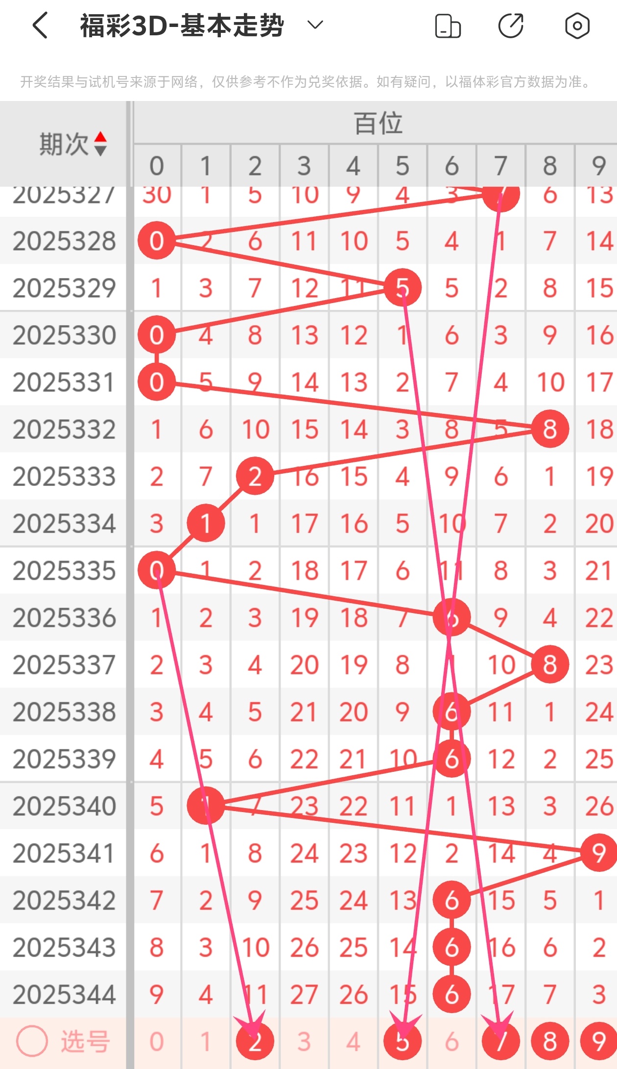 下面是福彩3D的百位走势图分析