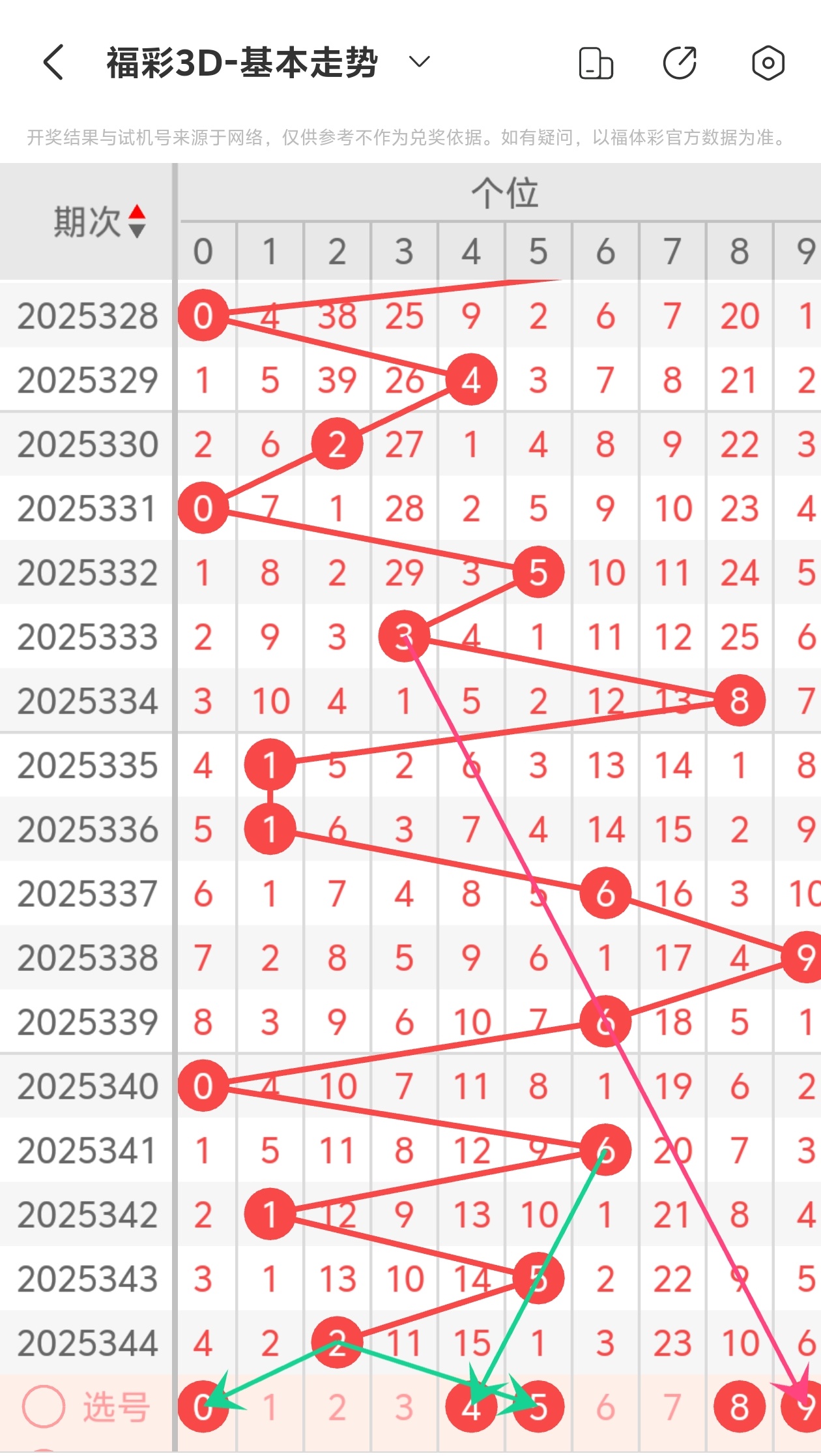 下面是福彩3D的个位走势图分析