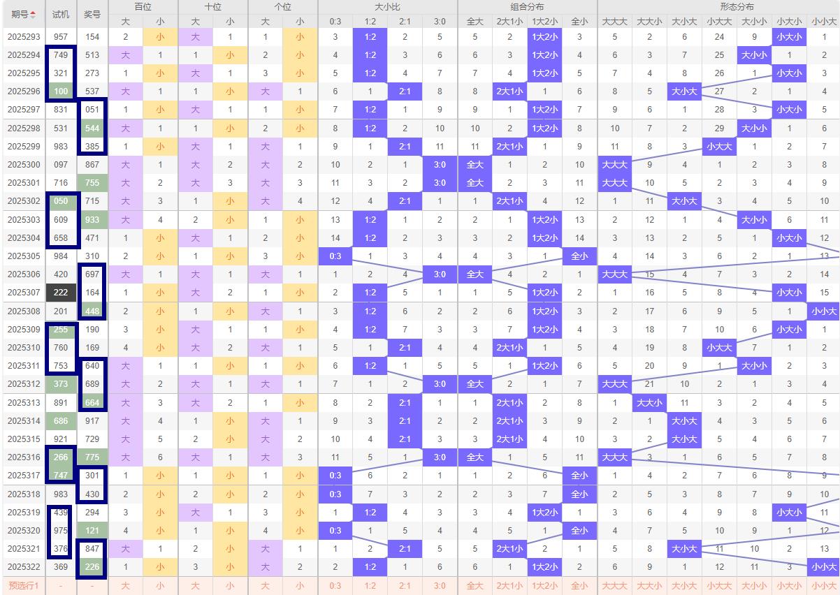 福彩/323期综合分析报告 :322期开奖号码为226跨度4和值为10,偶偶偶,小小大的形态。