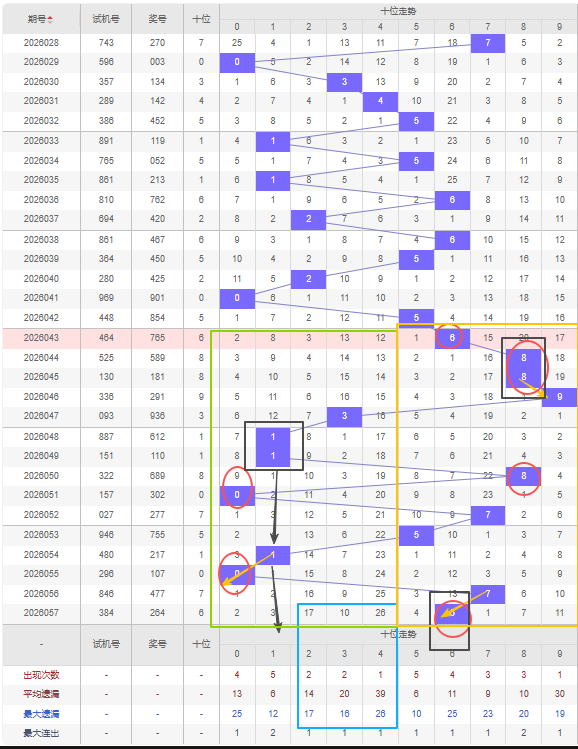 福彩3D第2026058期百位首先分析本期百位奇偶数的形态,可以看到近15期开出奇数号8期,偶数号7期,虽然开出奇数号的概率比开出偶数号的概率略大,但可能逐渐增加偶数号,根据以上所述本期看好继续开出偶数号,建议继续选择遗漏期数较大的偶数号开出。比如0号和8号已经遗漏十期以上,并且0号达到其自身的最大遗漏期数,建议考虑防冷号开出。近十五期内都没开出重号,那么也可以考虑继续开出上一期开出的偶数02号。杀号建议定在所有奇数号。但奇数号中可以考虑间隔几期就会开出的01号,并且可以作为上期开出的02号的邻号。