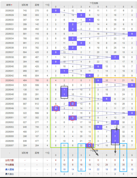 福彩3D第2026058期个位先分析奇数偶数,近十五期开出奇数号11期,开出偶数号4期,开出偶数号的概率几乎是开出奇数号的概率的三分之一。在近十五期奇数连出的次数多连出,目前已经连出奇数号五期了是连出期数最大的了,虽然上期开出偶数4号,但本期还是看好奇数号,建议考虑遗漏期数较大的奇数号。比如1号和3号,已达到十期遗漏期数建议开出防冷号开出。