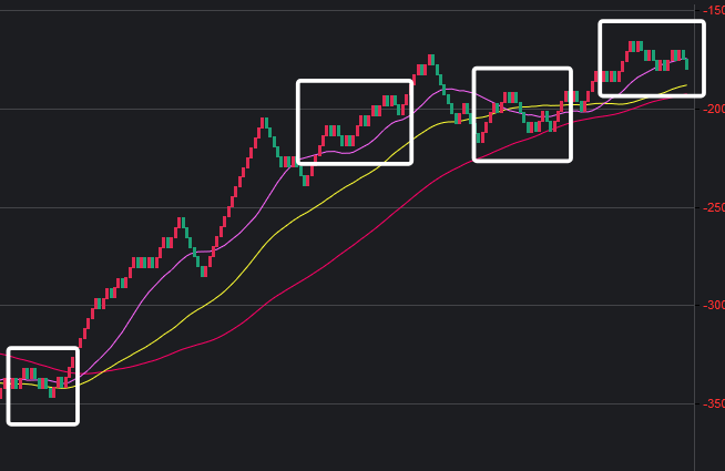可以看到一些规律,在粉框中,如果一致,那么接下来这些跨度也会出。