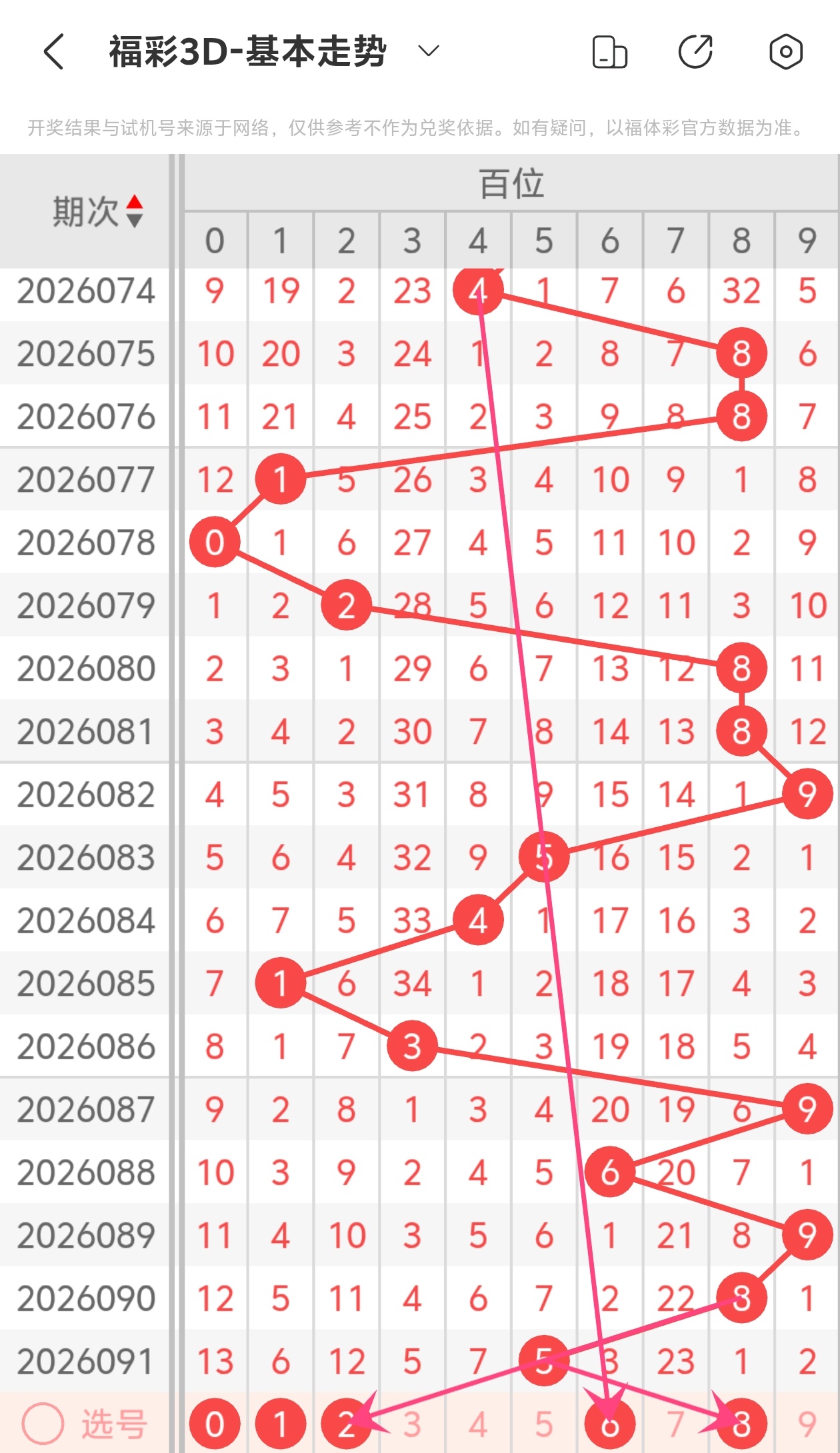 下面是福彩3D的百位走势图分析