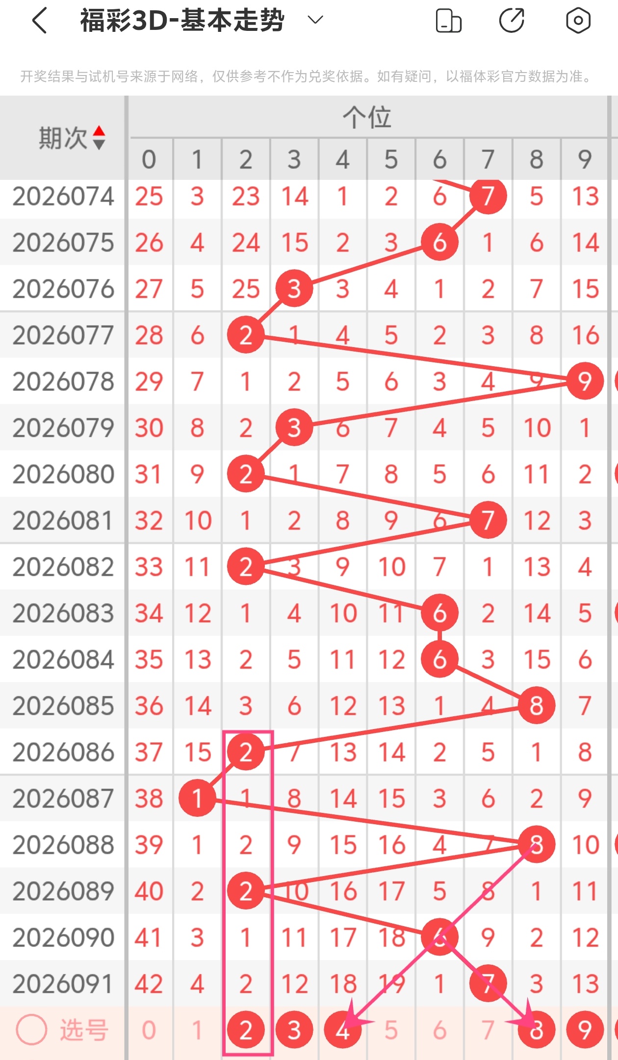 下面是福彩3D的个位走势图分析