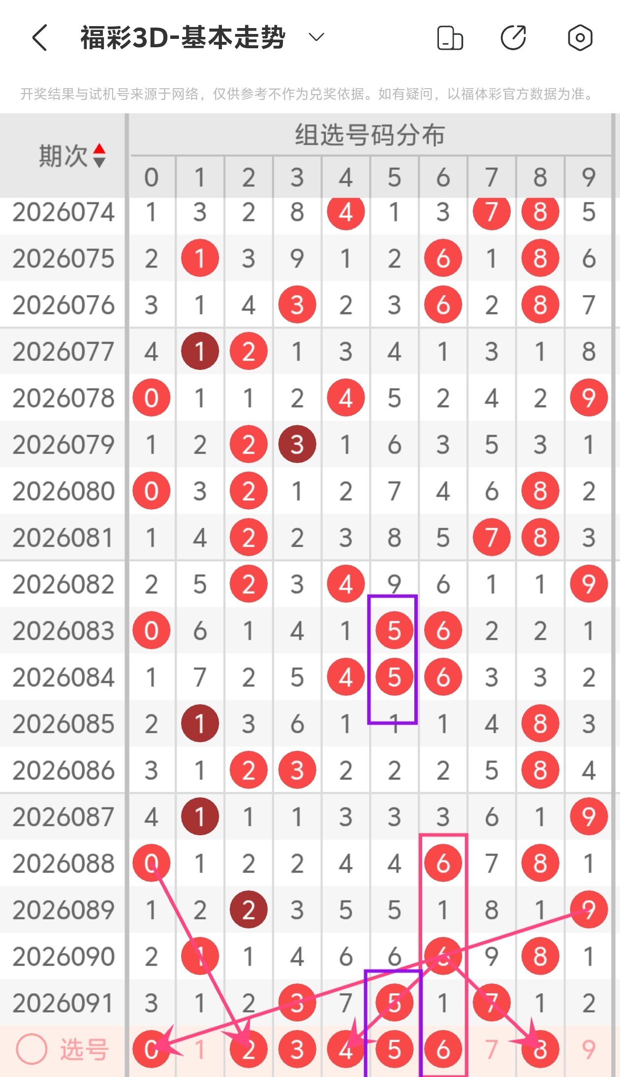 通过以上简单分析,我们看下26092期号码的定位分析: