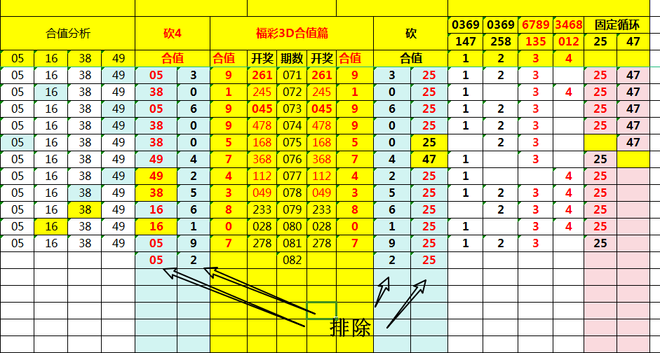 合值之解,简单明了:即三个数字相加之和,取其尾数便是。基于前文逻辑,一脉相承,搭建合值研判表格,层层递进,助力研判: