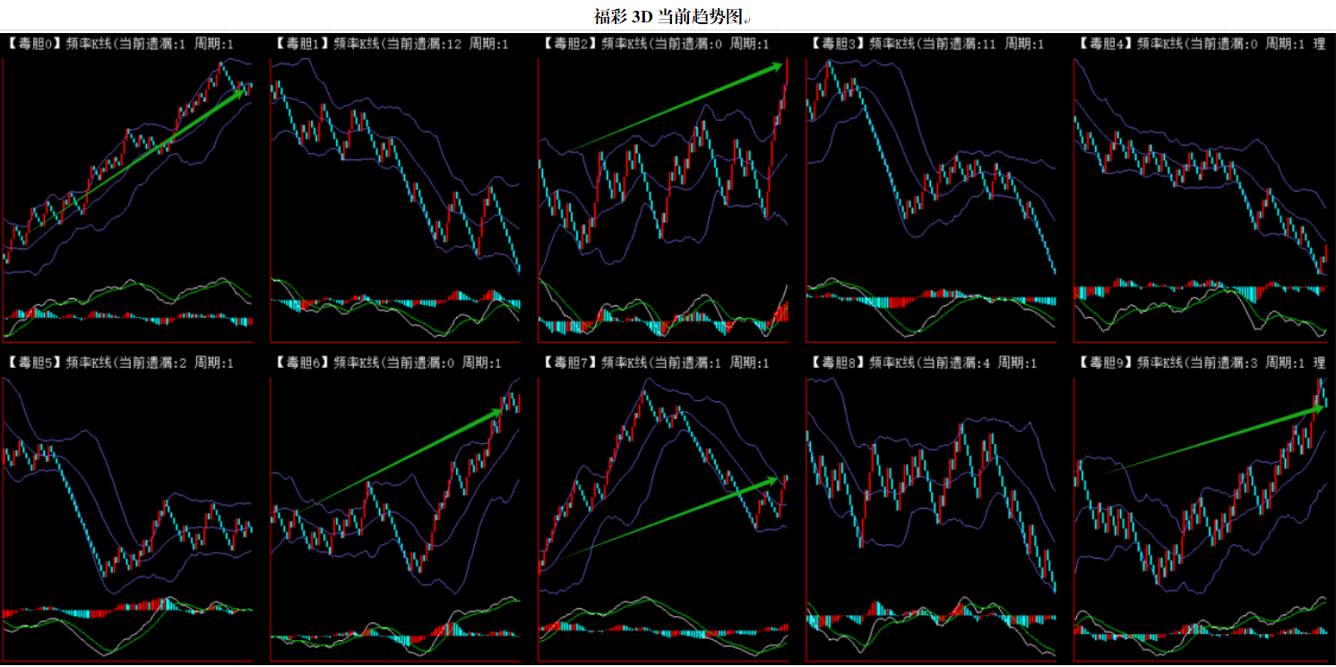 整体趋势上行,上边沿线趋势向上,下边沿趋势也是向上,节点震荡,当前连开9期,本期关注。