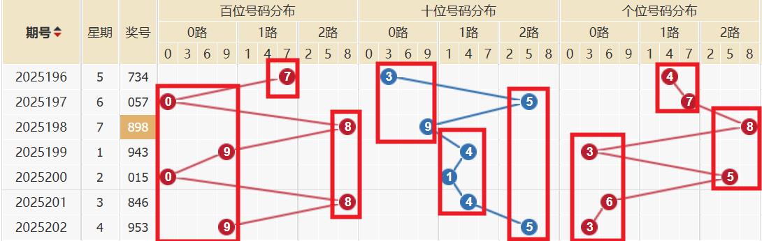 近七期百位012路比为4:1:2。冷温热形态依次为温→温→热→热→温→热→热。基于动态平衡干预以及概率补偿机制,本期百位重点关注0,1,2,4,5,8。近七期十位012路比为2:3:2。冷温热形态依次为热→热→热→热→冷→热→热。基于动态平衡干预以及概率补偿机制,本期十位重点关注0,1,2,6,7,8。近七期个位012路比为3:2:2。冷温热形态依次为热→温→热→热→热→冷→热。基于动态平衡干预以及概率补偿机制,本期个位重点关注0,2,4,5,6,8。