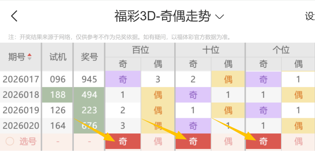 带着粉丝发大财福彩3D第26021期选号条件分析