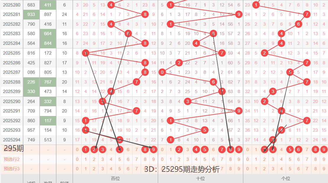 3D:25295期定位分析(定三胆)