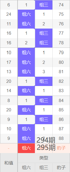 上期形态:组六,近10期的形态分别为:组六,组六,组六,组三,组六,组三,组六,组三,组六,组六,近期组三和组六的形态比较规律性,根据以往形态规律,本期个人认为需要重点关注组六落位,同时也需要防组三形态的开出。