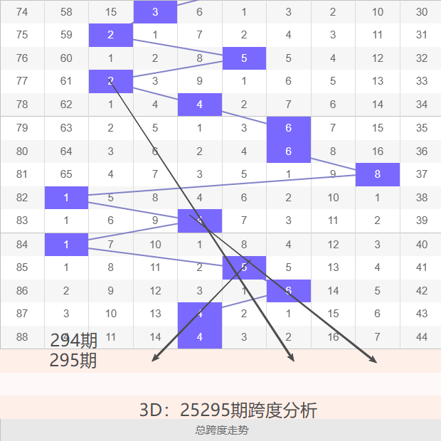 近3期跨度变化不大,上期振幅0,近期10期跨度分别为:6跨,6跨,8跨,1跨,4跨,1跨,5跨,6跨,4跨,4跨,小跨度近期有开始走强的趋势,跨度目前整体是明显的开始偏向于大跨度的,本期个人预期跨度是可能走向大跨度,可参考:7 跨 ,8 跨,9跨,同时防 :2跨,3跨,6跨,