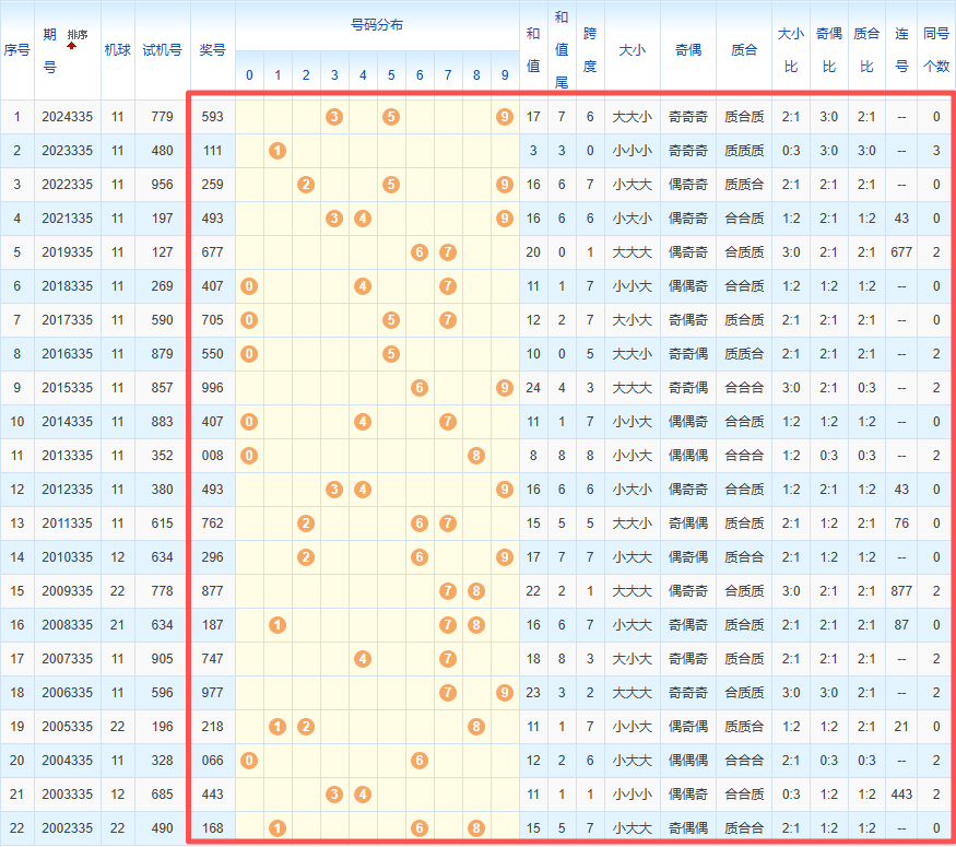 1、统计往年同期开奖号码