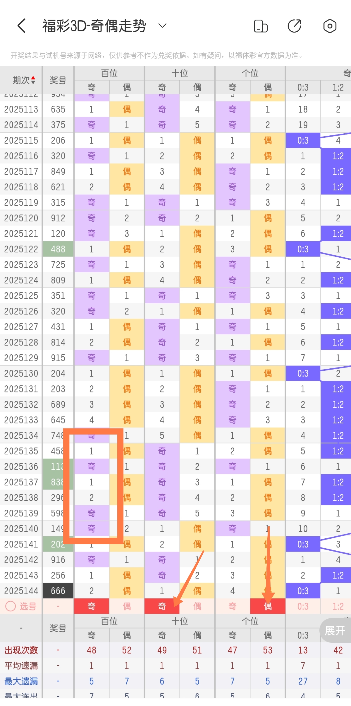 十位:按百期奇偶走势规律优先考虑偶数02468,优先小数数值的024范围。振幅数值看偶数数值的046,对应上期奖码6出数值026,那么十位保险推荐02468,三码026,两码02,单挑2。