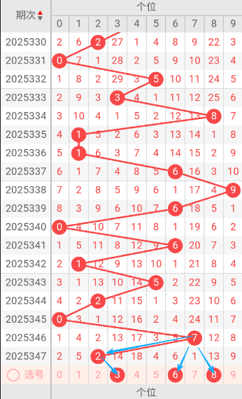 现在我给大家分析下,本期个位可能开出的号码,上期开出了2,335期开出了1号码球,336期开出了1号码球,337期开出了6号码球,338期开出了9号码球,339期开出了6号码球,340期开出了6号码球,341期开出了0号码球,342期开出了1号码球,343期开出了3号码球,344期开出了2号码球,345期开出了0号码球,346期开出了7号码球,347期开出了2号码球,跟据这几期的走势和历史30期内的走势对比,可以先考虑本期可能会出大号,下面我给大家推存个位可能开出的几个号,个人比较看好368,个位我们就先暂定这两个号。本期重点关3-8之间的号码,同时关注遗漏期数较大的号码。按最近遗漏走势,开了遗漏期数较大之后开遗漏期数小的可能性比较大。