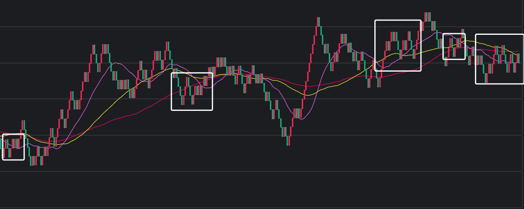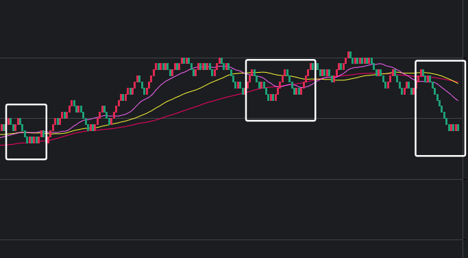 可以看到一些规律,在粉框中,如果一致,那么接下来这些跨度也会出。