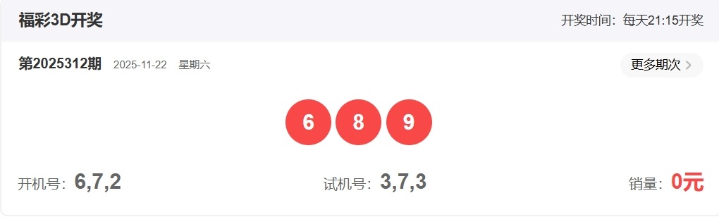 福彩3D第2025312期开奖689