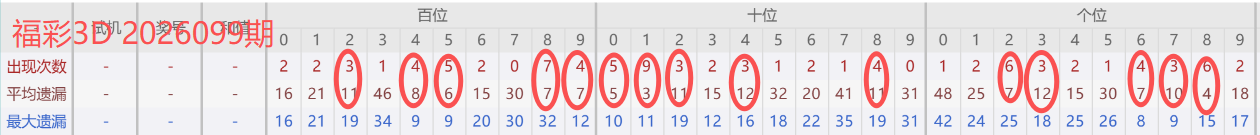 福彩3D 2026099期分析分享