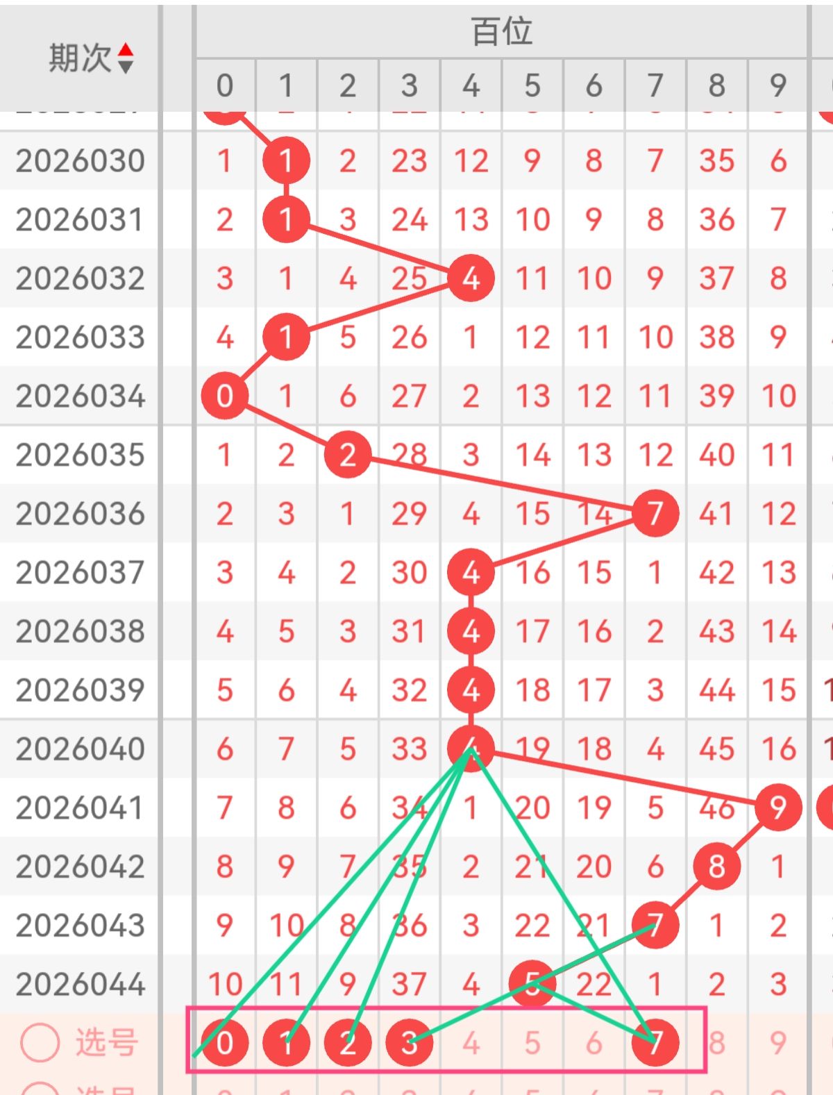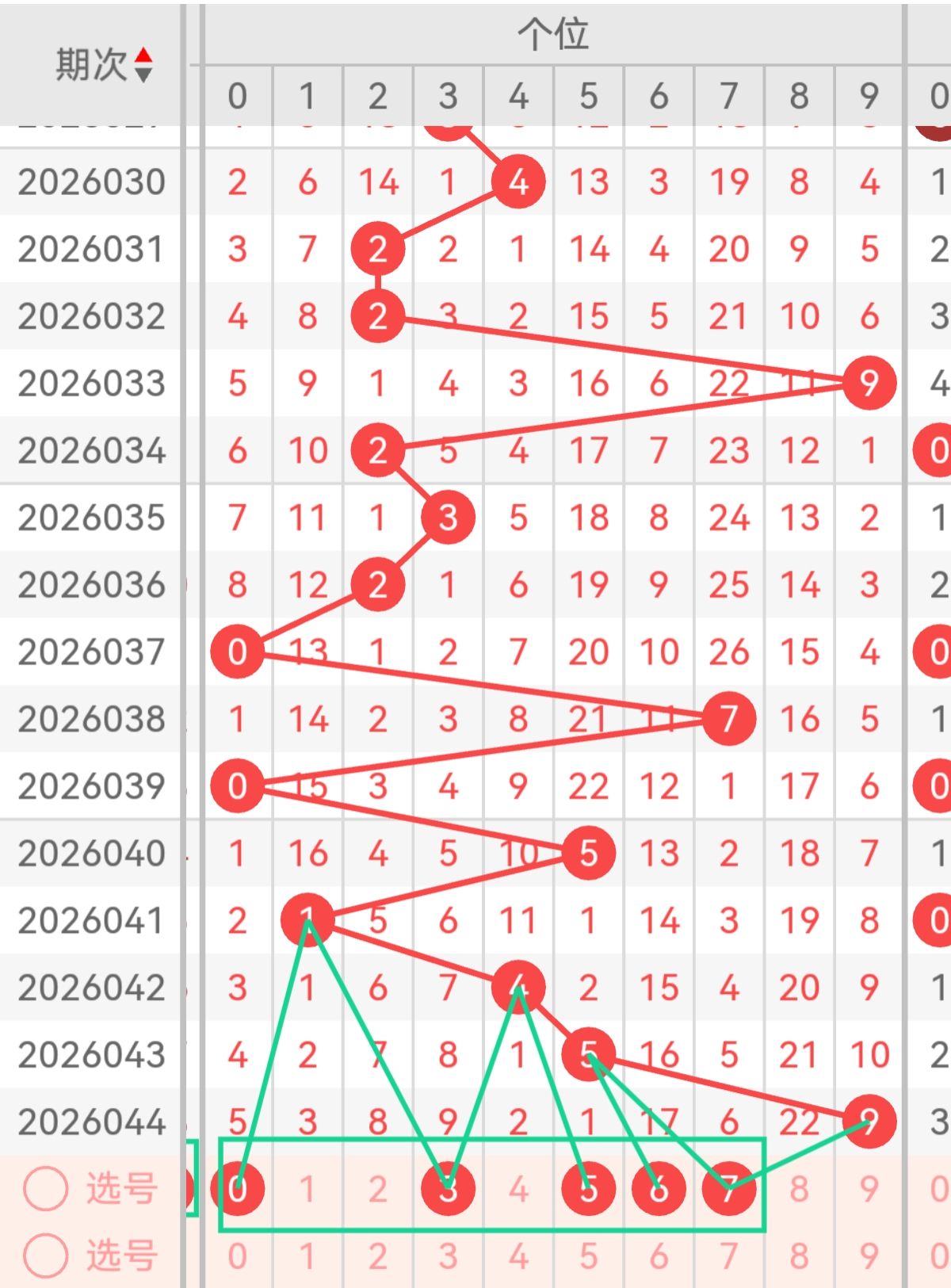 上期个位开出9,本期重点向小、中段号码切换。个位重点关注0、5、7,0为小数偶数,5为中段奇数,7为大号热码,三者区间完整、奇偶均衡,近30期开出概率较高,是本期个位核心组合。备用号码选择3、6,3为小数奇数,6为中段偶数,用于补防遗漏。 个位近期奇数偏热,偶数回补需求提升,0作为偶数起点,价值突出;5为中轴号码,冷热均衡;7为大号防守,延续近期热度。