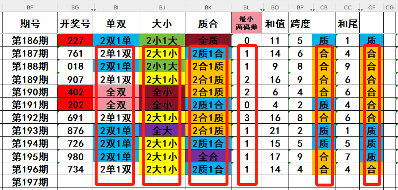 3,最近10天当中,两质一合开出4次,两合一质开出5次,全质数开出0次,全合数开出1次。近期需重点关注开奖号码两质一合的回补!