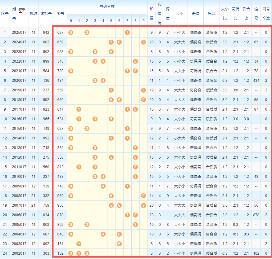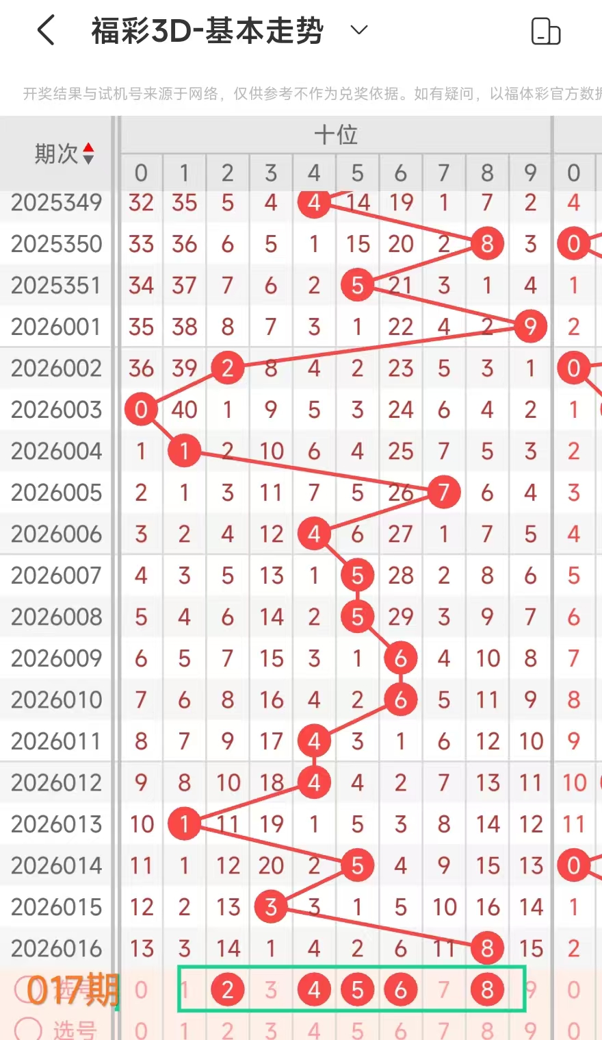 3、当个位开出2后下期开出:174008852,经统计0号出2次、1号出现1次、2号出现1次、3号出现0次、4号出现1次、5号出现1次、6号出现0次、7号出现1次、8号出现2次、9号出现0次。观察发现08号近期出现频繁,本期可以考虑。