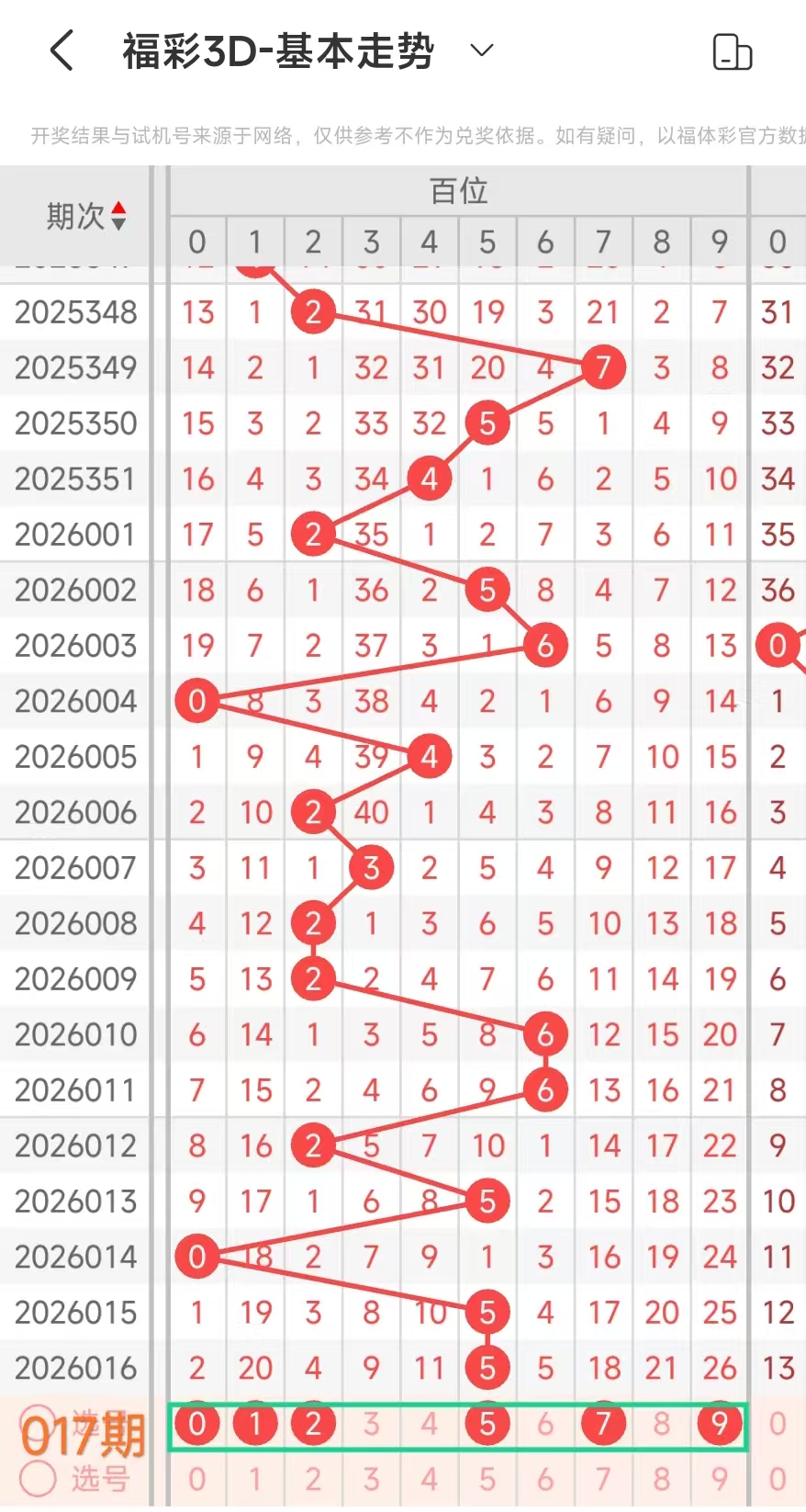 4、通过上述我们得到这期百十个位分析号码:百位026,十位467、个位08