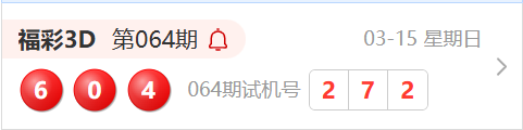 福彩3D第064期开奖结果为:604