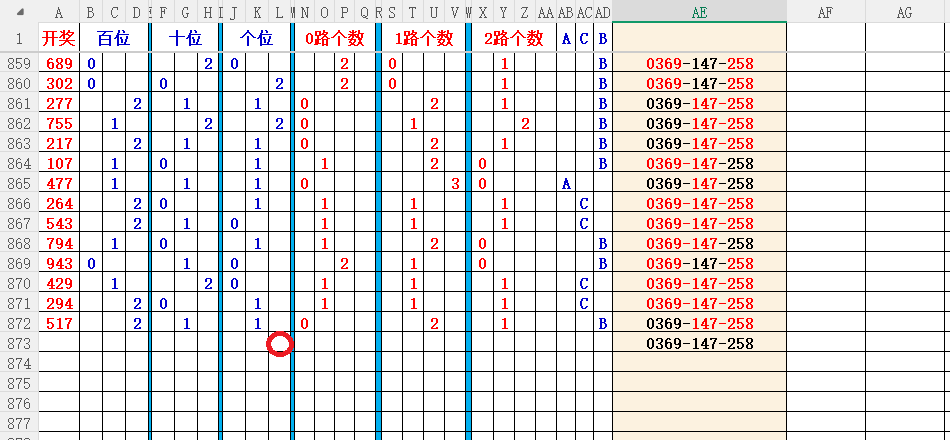 如上图2,012路分析01路尾走比较好,关注0369147尾;