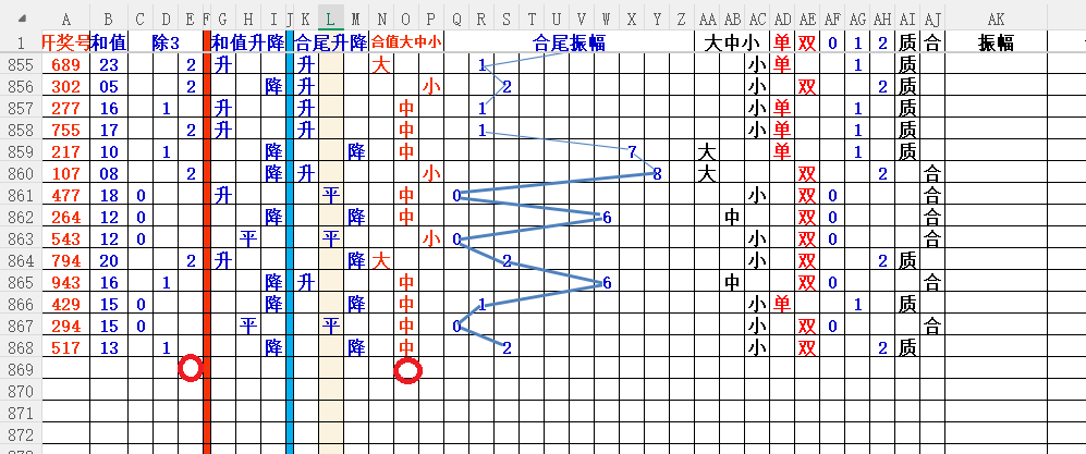 如上图3,和值升降平分析,和值升概率大,小于13和值