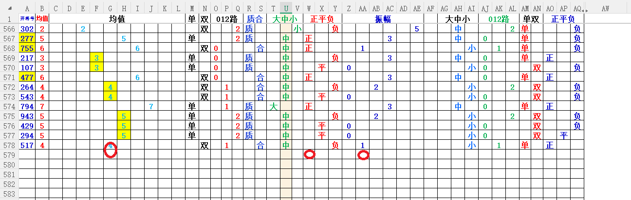 均值:就是开奖号每各数的总和除3,然后得到的余数,如果不够整除可以+1,-1,直到被整除得的数就是均值