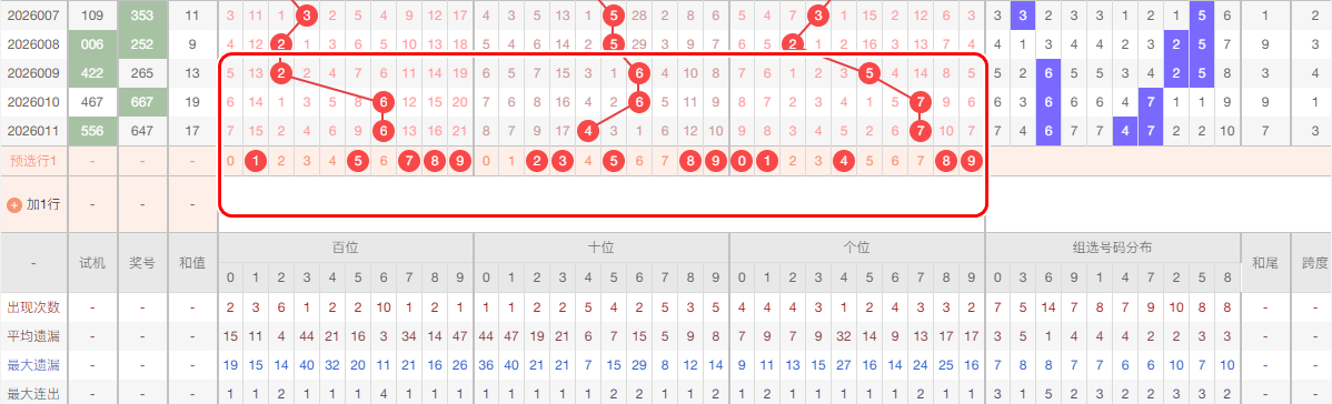 上期个位开出7,本区与上期的跨度为0,本期我们重点关注 014,本期 个位推荐关注:01489