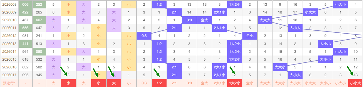 最近的5期当中十位大数出现的频次2次 小数出现3次 ,趋势平和 本期看好走大
