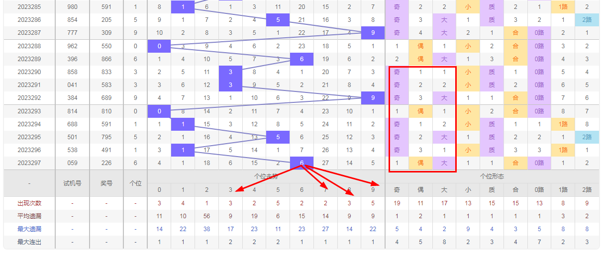 福彩3D个位分析:第297期个位号码6属于大数偶数,从十位走势图中可以看出近30期的大小比为17:13大数处于多数结合连线走势看有继续回补小数的可能。奇偶比为19:11偶数处于弱势偶数有回调支援的趋势,因此福彩3D第298期十位看好偶数0246.防守大数奇数9