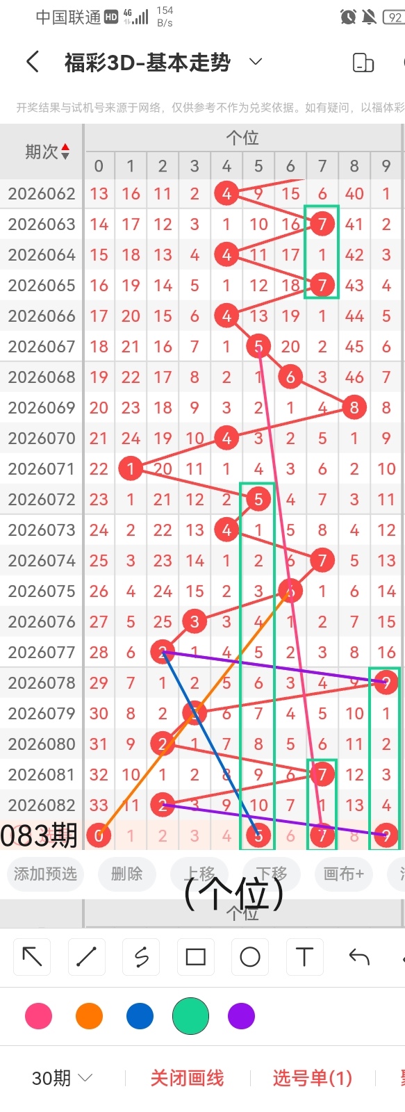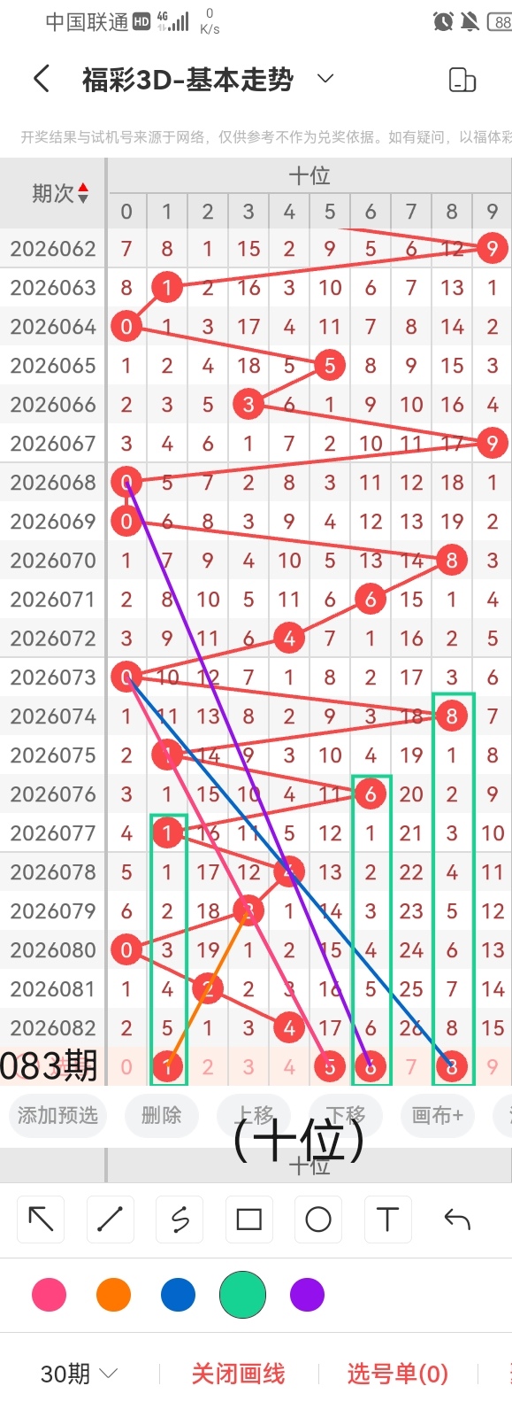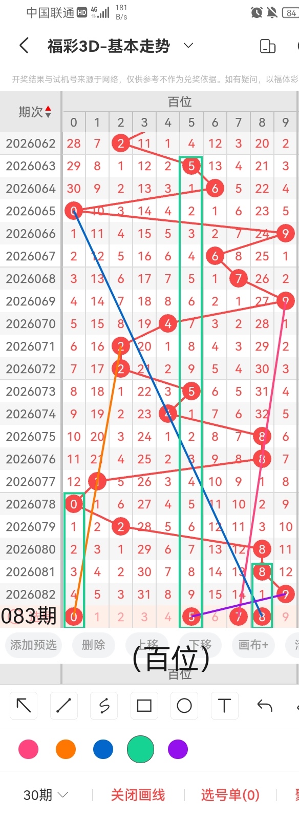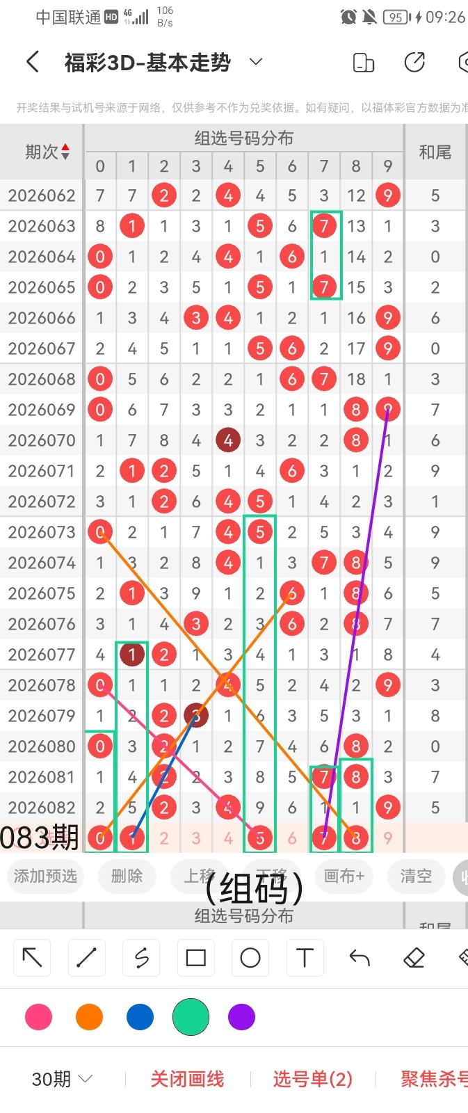 通过以上对上期的简单回顾,下面进入2026083期(下面简称本期)的选号分析:
