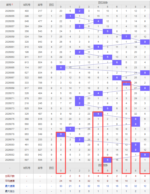 2026084期五码定位(百位、十位、个位):