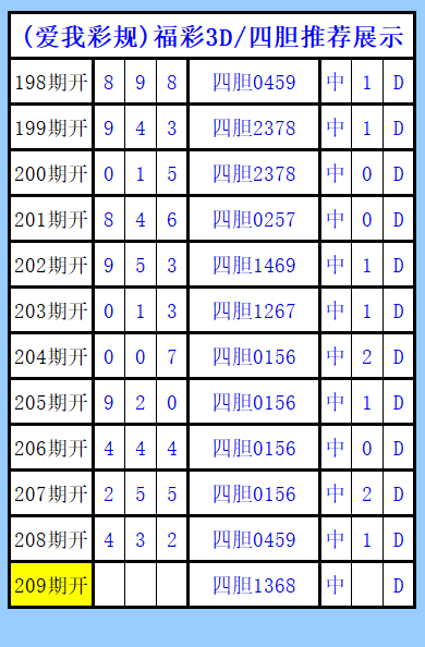 福彩3D第209期图文(爱我彩规),四胆推荐展示