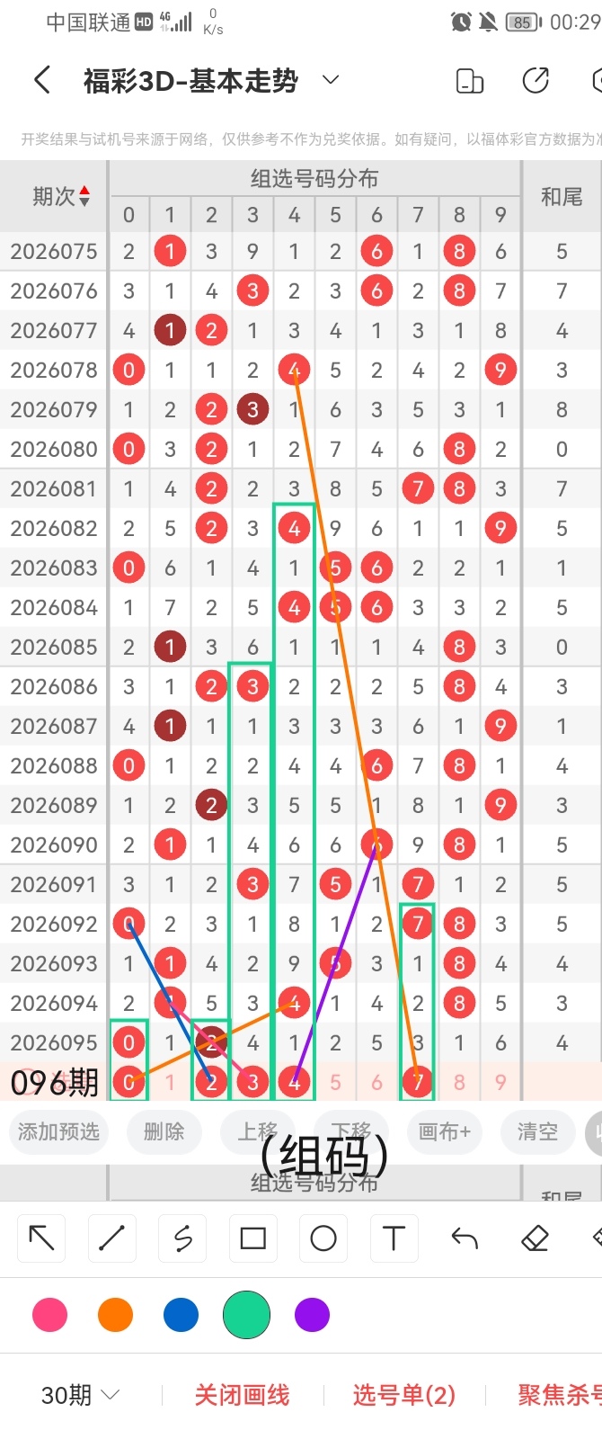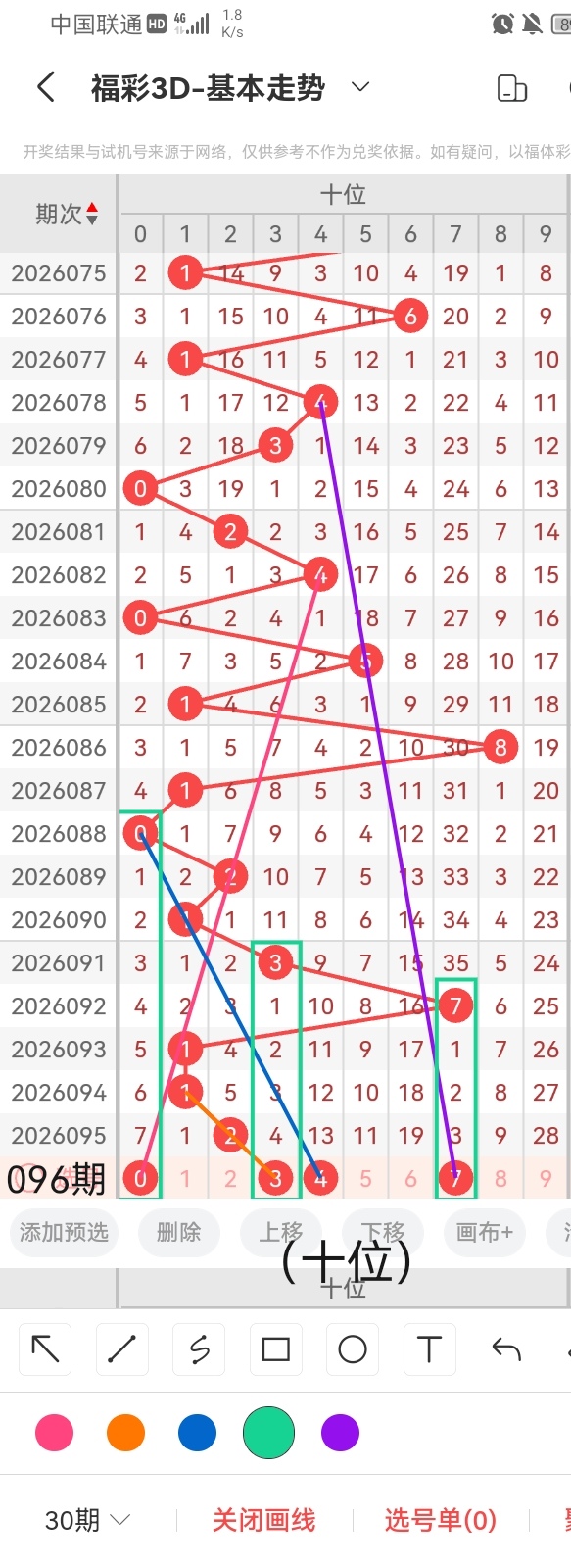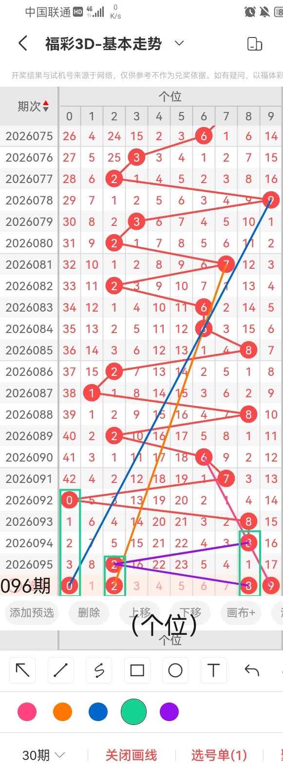 通过以上对上期的简单回顾,下面进入2026096期(下面简称本期)的选号分析:
