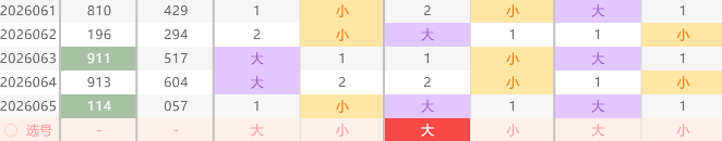 ② :本期福彩3D十位大小走势,根据图上标记规律,最近30期内十位出现出小小后出大规律,此规律已出现一组,如图中所示,据规律概率理论值来分析,本期十位开出大数号概率很大,所以本人分析本期期十位出大号,可以参考十位:56789