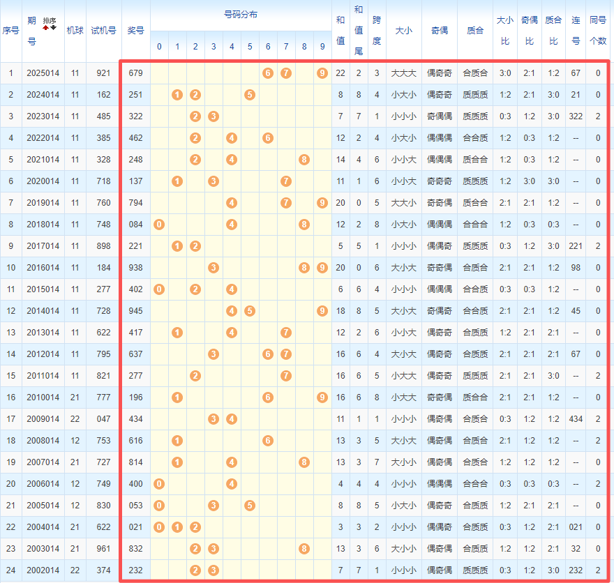 1、统计往年同期开奖号码