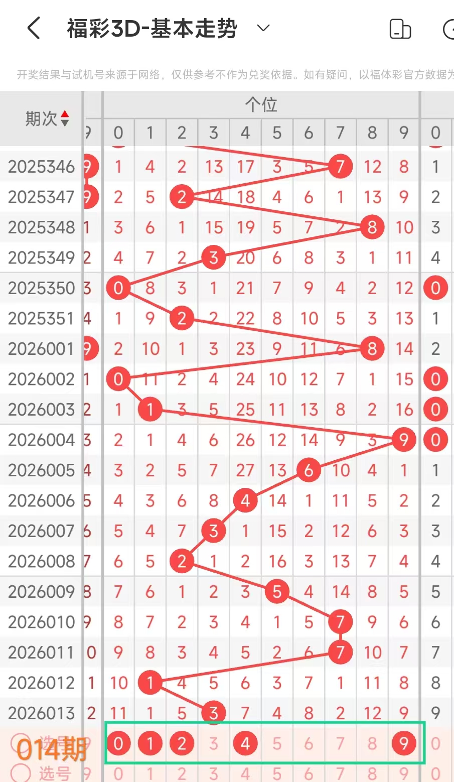 4、通过上述我们得到这期百十个位分析号码:百位26,十位679、个位12