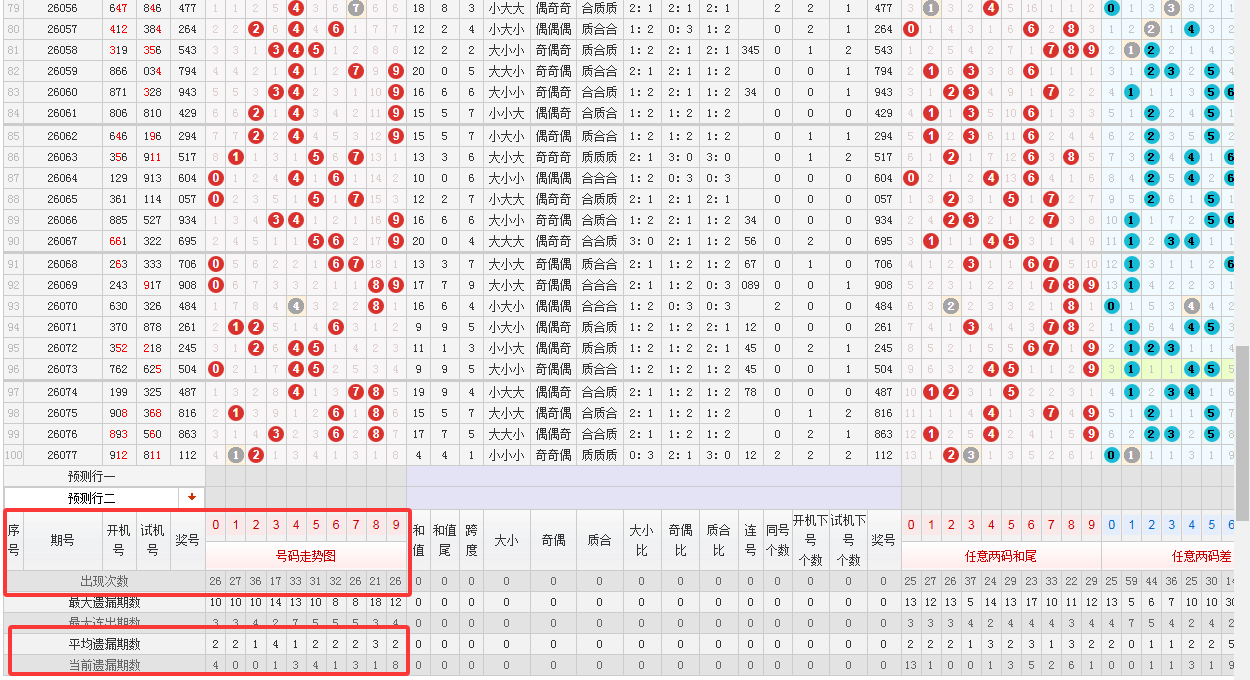(二)取近100期综合下落概率给号码进行逐一分析
