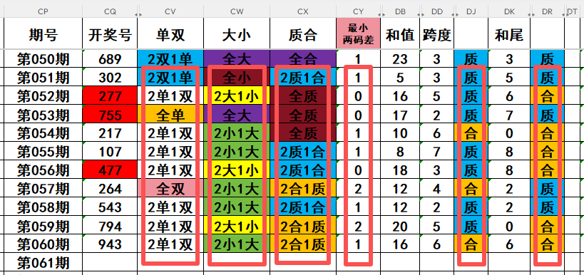 2,目前开奖号十位号码球11天当中,质数(12357)开出了5次,合数(04689)开出了6次,本期重点关注开奖号十位号码球质数的回补!