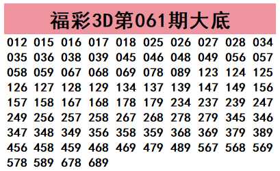 福彩3D第2026061期直播间大底参考: