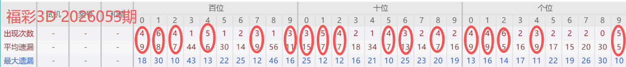 2026050期开奖号码689,我们可以看出近30期百位6出现2次(较052期减一),十位8出现4次,个位9出现5次。