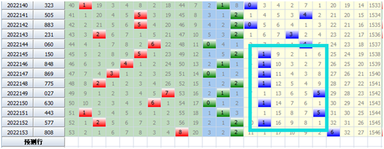 比如我们看到上图,2022145期开奖150,当期跨度是5,144期开奖060,当期跨度是6,那么这两期跨度振幅就是6-5=1,这个就是跨度的振幅,其实振幅就是跨度的距离。此时我们注意这段时间跨度的振幅,从145穷到152期,我们可以看到图表中跨度振幅就开出了两个数字1和5,并且整整开出了8期,那么1和5是什么数字,当然是单数、质数,所以我们应该判断跨度振幅不能在开出单数字、质数字,应该去选择偶数字合数字。